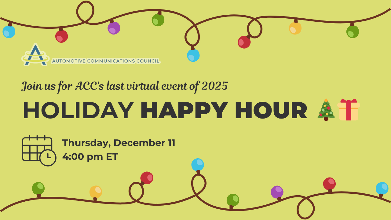 Zoom - HolidayJoin us for ACC’s final virtual event of 2025 — our Holiday Happy Hour! Let’s wrap up an incredible year together with a fun, casual hour of connection, celebration, and a few surprises along the way. Bring your favorite festive drink, turn on your coziest holiday vibes, and come hang out with your ACC community one more time before we close out the year. This is a relaxed, come-as-you-are event designed for catching up, sharing a few laughs, and heading into the holidays on a high note. Whether you’re a long-time member or new to ACC, we’d love to see you there!